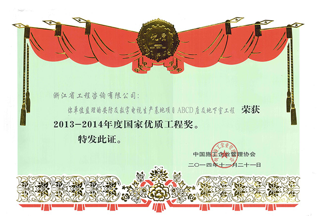 2013-2014年度国家优质工程奖-安防及数字电视生产基地项目ABCD座及地下室工程
