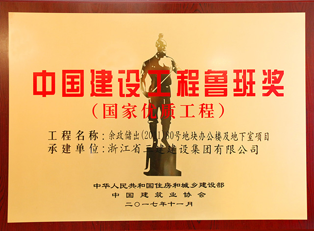 中国建设工程鲁班奖(国家优质工程)-余政储出(2011)80号地块办公楼及地下室项目