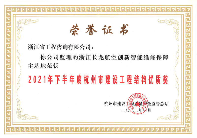 2021年下半年度杭州市建设工程结构优质奖-浙江长龙航空创新智能维修保障主基地