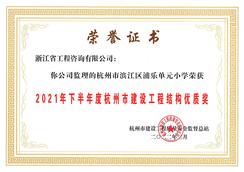 2021年下半年度杭州市建设工程结构优质奖-杭州市滨江区浦乐单元小学