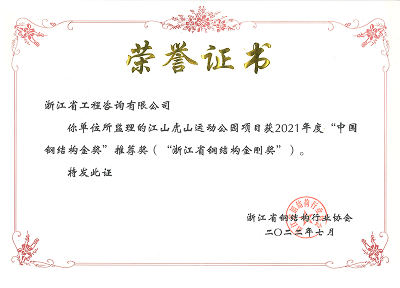 2021年度“中国钢结构金奖”推荐奖(浙江省钢结构金刚奖)-江山虎山运动公园