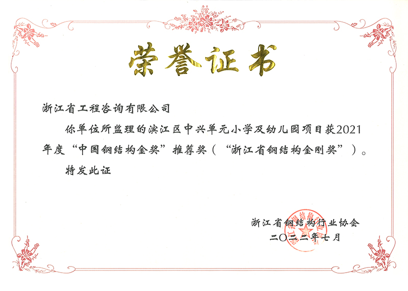 2021年度“中国钢结构金奖”推荐奖(浙江省钢结构金刚奖)-滨江区中兴单元小学及幼儿园项目