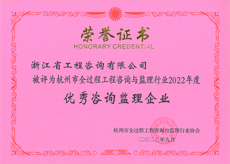 杭州市全过程工程咨询与监理行业2022年度优秀咨询监理企业