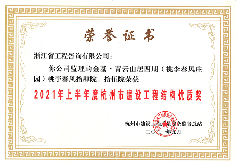 2021年上半年度杭州市建设工程结构优质奖-金基·青云山居四期(桃李春风庄园)桃李春风拾肆院、拾伍院
