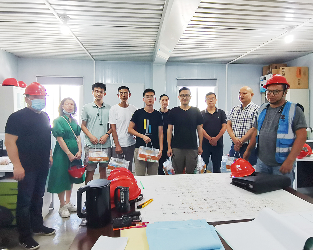 2022年8月3日、8月4日,公司执行总经理杨哲野、办公室主任金美青和公司副总工蒋挺、郑卫红等一行,代表公司党总支、公司工会和公司领导以及各职能部门,到公司直管项目现场开展夏季高温慰问活动,看望并慰问坚守在工作一线的项目部同事们,给大家送去了防暑降温用品。