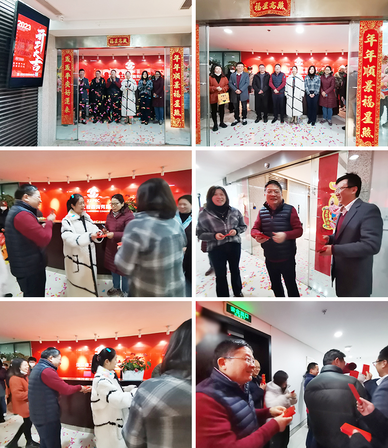 新春伊始,万象更新。2023年1月30日上午9点18分,开门礼炮准时打响,公司总经理高洪舟携公司领导班子向公司全体员工拜年,祝愿大家在新的一年阖家欢乐、身体健康、幸福美满。祝愿公司在新的一年突飞猛进、蒸蒸日上。
