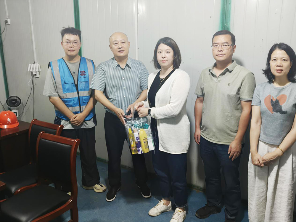 炎炎夏日,热浪袭人。为切实守护一线员工身体健康,筑牢安全生产防线,维护员工安全权益,7月23日至25日,公司执行总经理杨哲野带队,办公室主任金美青、副总工蒋挺、总师办应淙涵等组成慰问团,代表公司党总支、工会及公司领导班子,深入项目现场开展夏季高温慰问活动,为坚守岗位的项目部员工送去防暑降温物资与浓浓关怀。