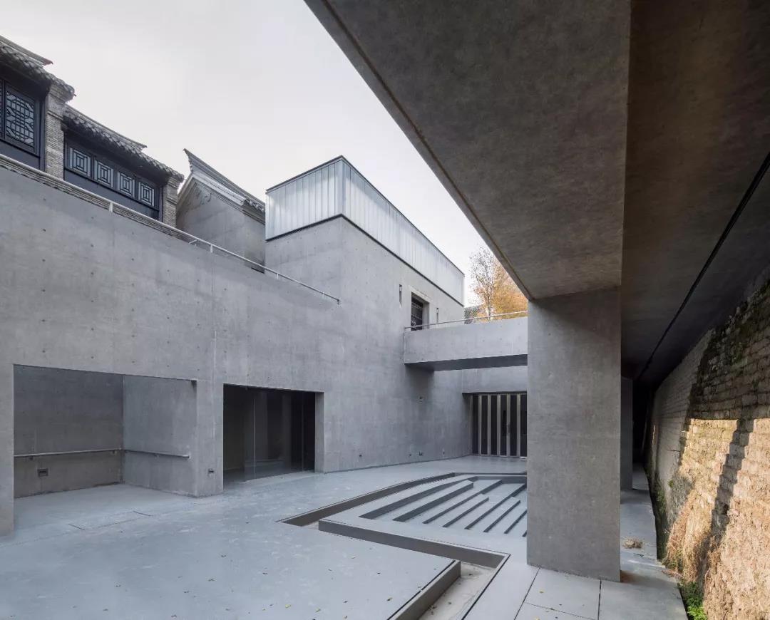 城墙博物馆坐落于回龙窝历史街区西南,以现代简洁的外观静伏于历史街区,设计上通过现代时态的空间建构与材料语汇展示历史变迁,在新与旧的关系探索中寻觅文脉在建筑空间的表达。空间在地面层和地下层同时展开,地面层为门厅、序厅,形制遵循传统民居建制,行到中部时拾级而下,步入地下层展厅,以时间倒叙营造沉浸式体验。展厅呈东西向矩形,隔墙交错布置,以流动的空间引导参观流线:先是通过狭长幽暗的历史陈列空间,豁然开朗后进入城墙马面展示空间,经转折见到古城墙,以室外庭园收尾,庭园地面以多重折线跌落石阶隐喻黄河古道,地面与东侧桥下飞瀑水流相连,隐喻护城河水流。建筑主体以清水混凝土、U型玻璃和金属瓦为主,既实现了与传统民居的照应,又重构了建筑的光环境,实现历史与现代的共语。该项目曾获中国建筑学会建筑创作金奖。