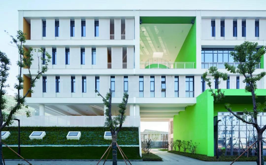 作为苏州高铁新城核心区的第一座九年一贯制的的校园综合体,在功能上,中小学既要做到分区明确,又要共享、共用。在形态上,展现了新城区的未来属性。高铁新城第一中小学的校园,巧妙的将“泛在学习”和景观之间彼此渗透,利用奇妙的空间关系,使环境在校园中流动,而“泛在学习”空间也突破了走廊的空间属性,通过多样性空间,将“使用即学习、学习即使用”的概念得以实现。