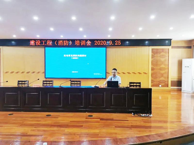 签约仪式前奏完毕后,吴江区住建局召开全区建设工程消防培训会。各镇区建管所、代建项目管理公司,全区建设、设计、施工企业等相关单位50余人参加培训会。来自中衡设计建筑、给排水、暖通、电气四个专业的专家顾志兴、程磊、朱勇军、杜广亮为参训人员授课。