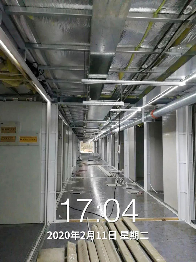 2月4日9:30,各专业方案沟通会议,明确管线安装节点、各专业系统方案、设计原则、建筑立面设计等,全面展开设计工作;同时联系集装箱式板房厂家等专项顾问公司,协调同步开展设计工作;17:00完成基础及结构底板设计,供现场施工;22:00,现场开始施工,垫层浇筑。2月5日,设计团队35人投入紧张的设计工作,完成设备清单,供现场采购。从2月3日至4日,约36小时便保证了现场顺利开工。