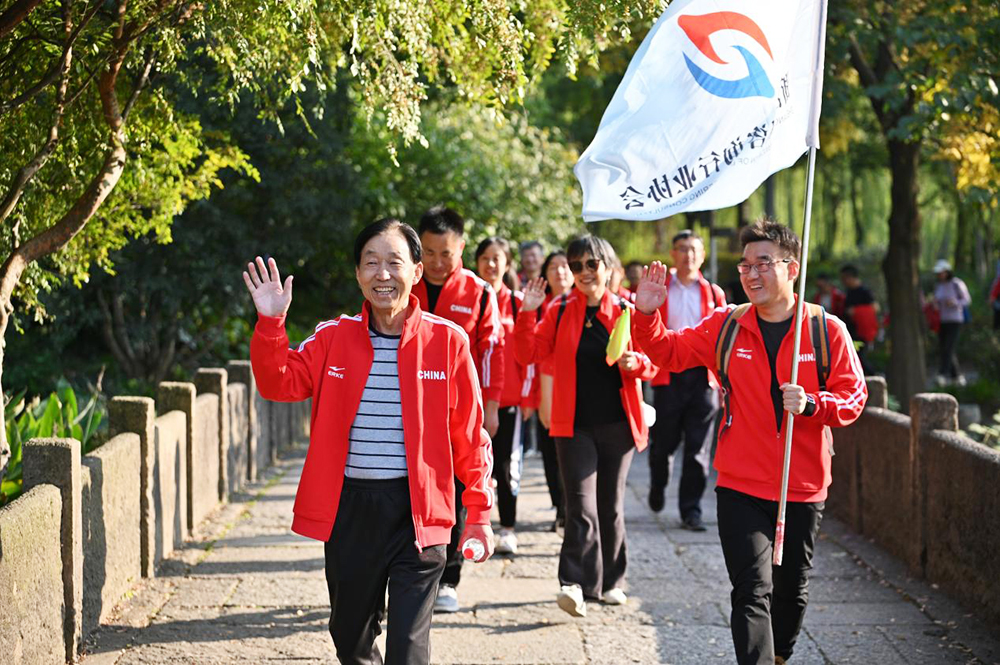 在协会领导的带领下,大家井然有序,沿着大运河北上,穿过霞湾桥,途经富义仓、大兜路历史文化街区及青莎公园,沿途沐浴着温暖的秋日阳光,饱览千年京杭大运河的风光旖旎,享受着健康运动带来的身心快乐。在北新关码头,大家进行了丰富多彩的团建趣味互动活动。